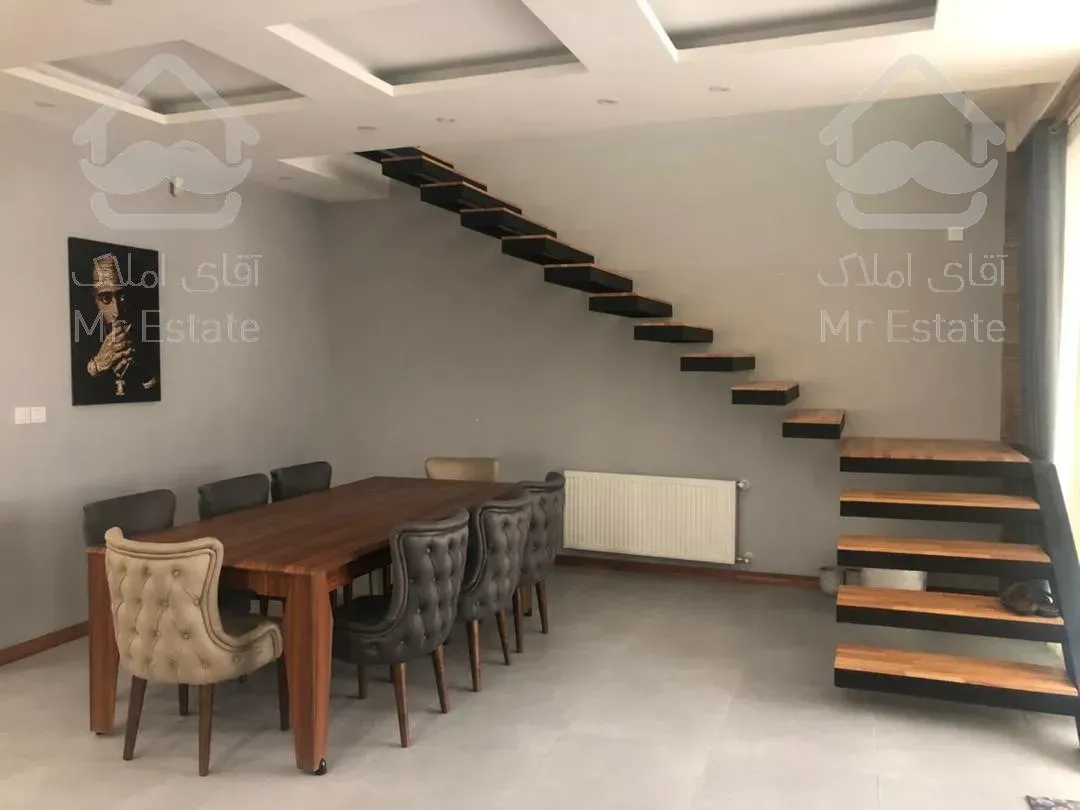 ویلا ۲۵۲ متری با نمای مدرن با حیاط نورپردازی شده و مبله