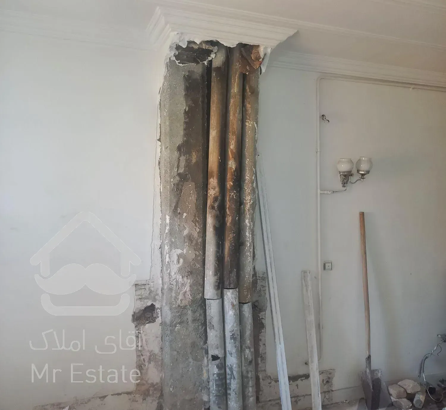 تخریب شومینه هلالی کف آشپزخانه کاذب بزرگ تخریبکار