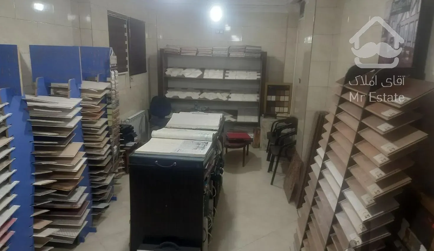 فروش وسایل و دکور کامل برای مغازه تزئینات ساختمان شامل: استند(پارکت و پوش) دکورسنگ میز برای کاغذی و نمونه ها میز و صندلی مدیریت میز و صندلی مشتری تابلو LEd و