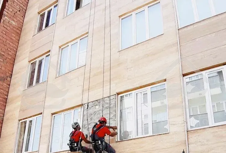 پیچ و رولپلاک سنگ نما.نصب سنگ.کار در ارتفاع.