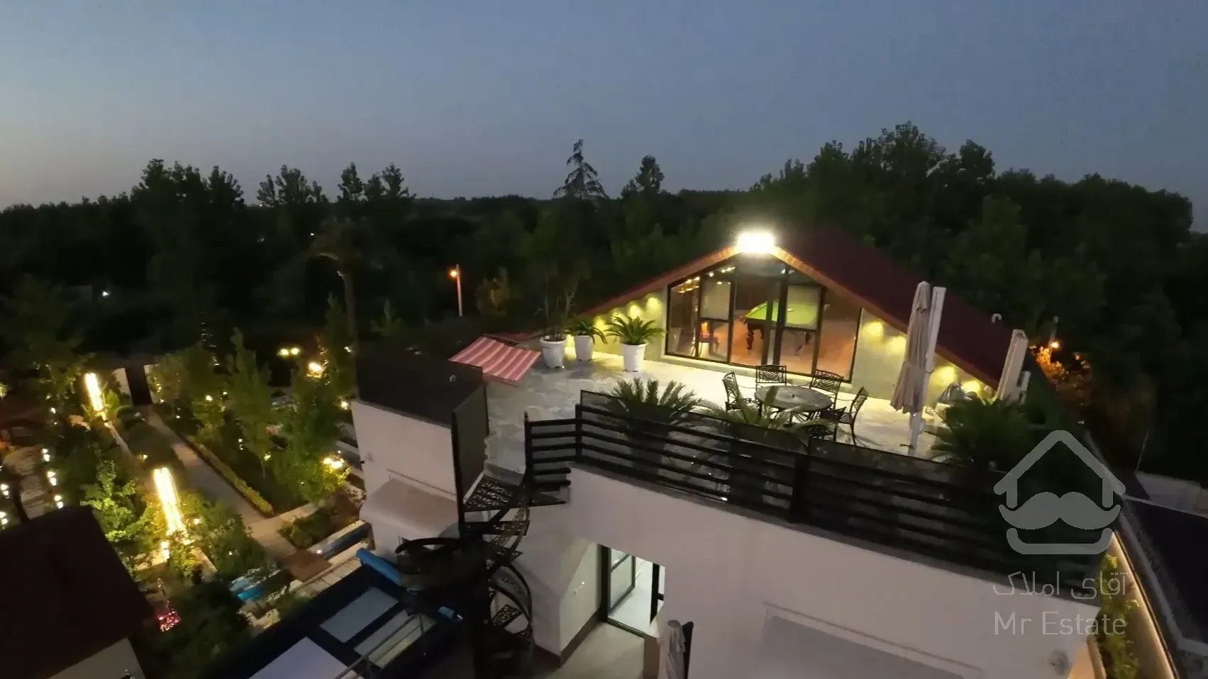 1400 متر زمین 650 متر بنا سند و پایان کار فول هوشمند استخر سونا و جکوزی ها هبلکس شیشه ها سه جداره سانروف ضد هجوم آبنما چهار خواب مستر دو تا روف گاردن ای فریم و گیم روم سرور داخلی خانه هوشمند و وی پی آن داخلی نهر ها و حوضچه های زیبا در حیاط محوطه سازی با درختان کهن سال تا ۷۰ ساله زیپ لاین شاه نشین و آتش دان سیستم گرمایش موتورخانه کلبه چوبی و استخر روباز زیر کلبه ۳۵ دوربین امنیتی آنلاین و دزدگیر و آبیاری محوطه هوشمند مبله کف سنگ اسلب ۲ در ۱ پیش تصفیه آب برق ۳ فاز ۱۰ پارکینگ ها ۳ متر و ۱ متر شاخ گوزنی درختان سیب، مرکبات و مثمر میز بیلیارد و ایر هاکی