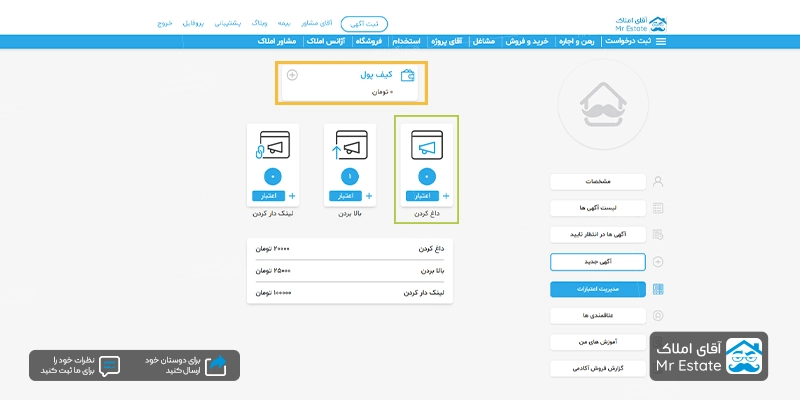 داغ کردن آگهی در سایت آقای املاک