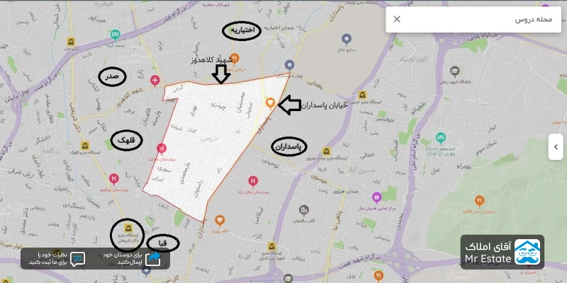 | محله های نزدیک | پاسداران، اختیاریه، قلهک، قبا و صدر |