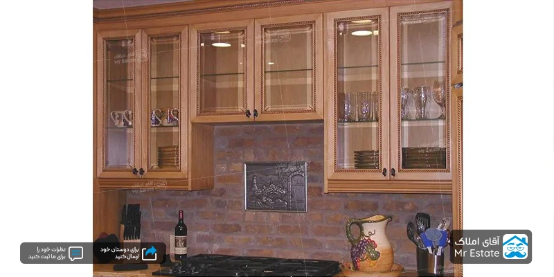 این یکی از طرح های کابینت است که با روکش چوبی با فایبرگلاس در مرکز پوشانده شده است. این مدل برای افرادی که از لباس های ظریف در طول روز استفاده می کنند، بسیار مناسب است. فضای ذخیره سازی در بالای اجاق گاز در دو طرف وجود دارد که می تواند طیف گسترده ای از کارد و چنگال و ظروف ظریف آشپزخانه شما را در آن نگهداری کند.