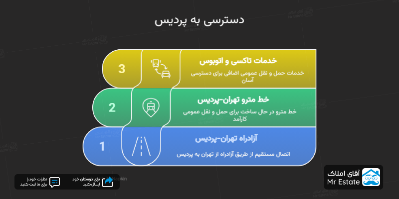قیمت مناسب: در شرایطی که بسیاری از مناطق تهران با رشد شدید قیمت مواجه شدهاند، پردیس هنوز فضا برای خرید با قیمت منطقی را فراهم میکند.