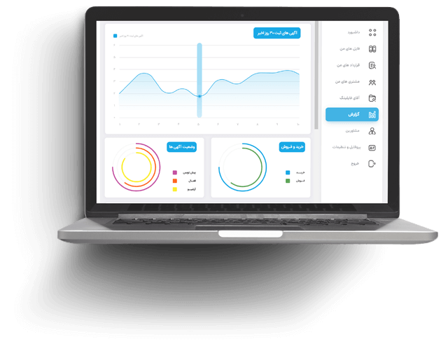 مدیران آژانس های املاک و مشاورین املاک با انتخاب گزینه گزارش می توانند تعداد کل آگهی های خرید و فروش و رهن و اجاره خود را در وضعیت های فعال، پیش نویس، آرشیو و ذخیره شده رویت کنند. مدیران آژانس های املاک با استفاده از گزینه مشاورین، امکان اضافه و حذف کردن مشاوران تحت پوشش خود را دارند