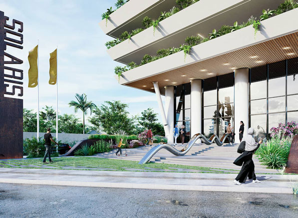 ویلا برج ساحلی سولاریس محمودآباد | Solaris Mahmudabad مشخصات واحدها: اولین طبقه مسکونی در تراز +۳۰ متر از سطح زمین واحدهای مسکونی با مساحت ۱۵۰ تا ۲۵۰ مترمربع و حیاطهایی به مساحت ۲۰ تا ۶۰ مترمربع واحدهای مسکونی با مساحت ۳۰۰ تا ۴۰۰ مترمربع و حیاطهایی به مساحت ۱۰۰ مترمربع واحدهای ویلایی با مساحت ۴۰۰ تا ۹۵۰ مترمربع در طبقات فوقانی، دارای حیاط سبز به مساحت ۱۵۰ تا ۳۰۰ مترمربع و استخر روباز ویژگیهای برج: - هلیپد اختصاصی برای فرود هلیکوپتر - رستورانی مدرن و بینظیر در ارتفاع ۱۲۵ متری - هتل ۵ ستاره لوکس در طبقه ۲۷ تحت نظر هتل زنجیرهای بینالمللی - مشاعات و امکانات رفاهی منحصر بهفرد با مساحتی بیش از ۳۰,۰۰۰ مترمربع - ۳ طبقه پارکینگ روی لابی با چشمانداز دریا و بهرهگیری از فضای سبز - فضای عمومی سرسبز به مساحت ۳,۰۰۰ مترمربع با مسیرهای پیادهروی و دوچرخهسواری - باشگاه تفریحات ساحلی و دریایی شامل قایق، جتاسکی، موتور چهارچرخ و دوچرخهسواری - ۳ استخر بزرگ در طبقه ۲۴
